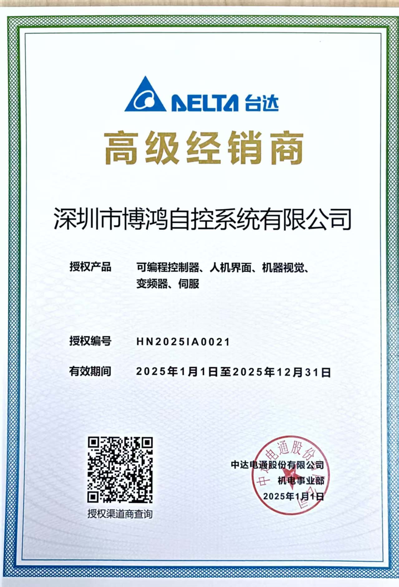 深圳市博鴻自控是臺達電子官方授權的一級代理,證書可在臺達官網查詢,從我司銷售的產品可確保全新原裝正品,一年質保,全球聯保。并享有售后全程技術支持。